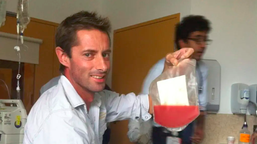 “They hook up this salmony coloured bag of the stem cells to your drip, in it goes and you’re off and running. There’s all this fanfare about transplant day, but afterwards you’re thinking ‘Is that it? Righto, I might go and watch a movie.’”